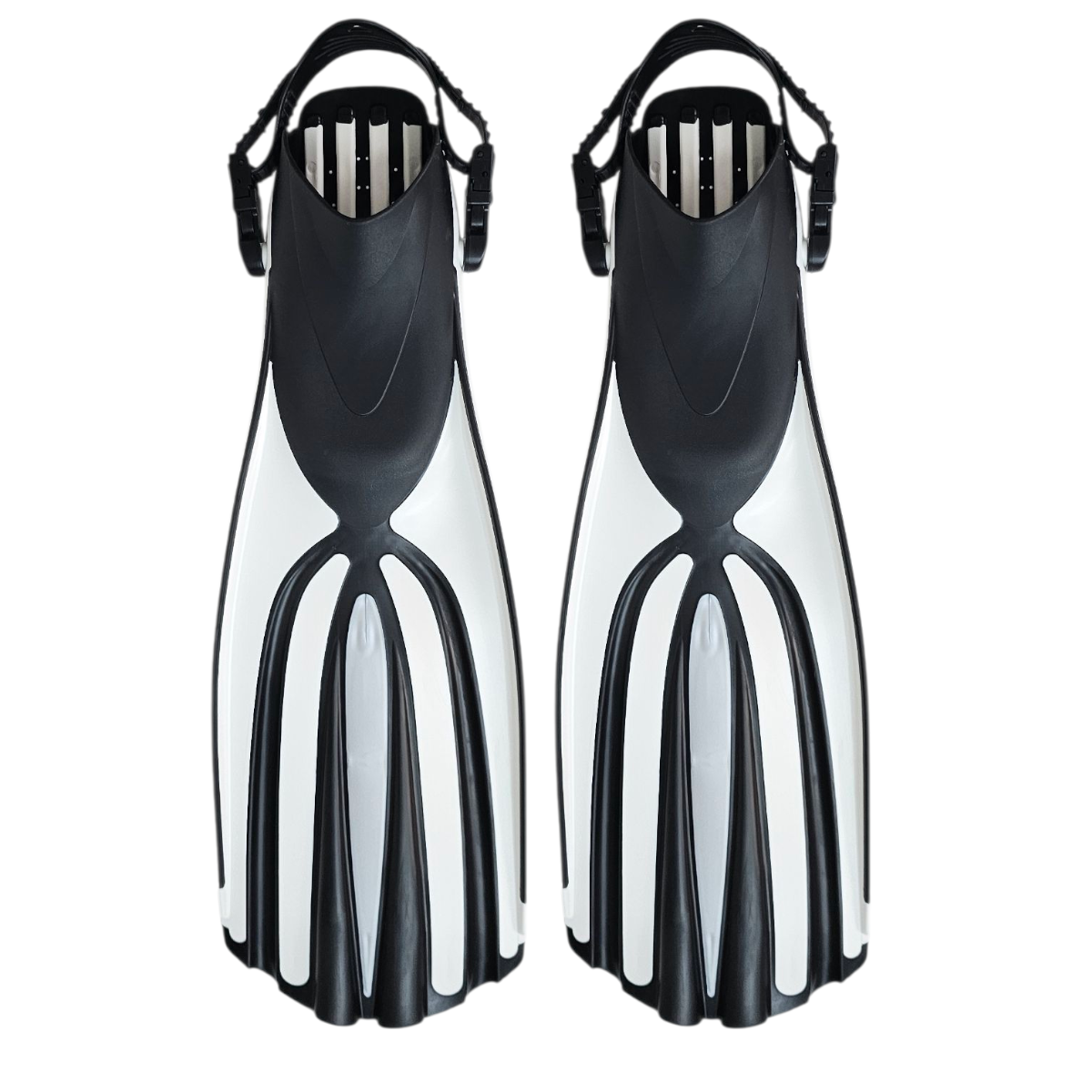 • Aletas de talón abierto, para usarse con botas de buceo.