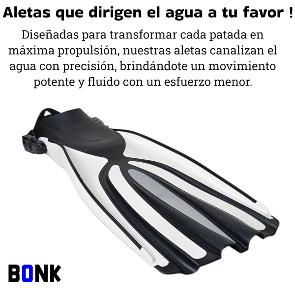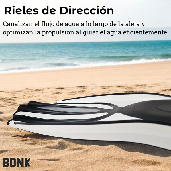 Sus canales direccionales optimizan el flujo del agua, permitiendo un avance más suave y natural, reduciendo el esfuerzo y aumentando tu rendimiento. Gracias a su diseño resistente y antideslizante, tendrás mayor estabilidad tanto dentro como fuera del agua.