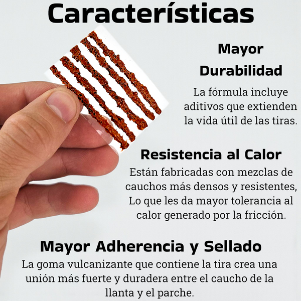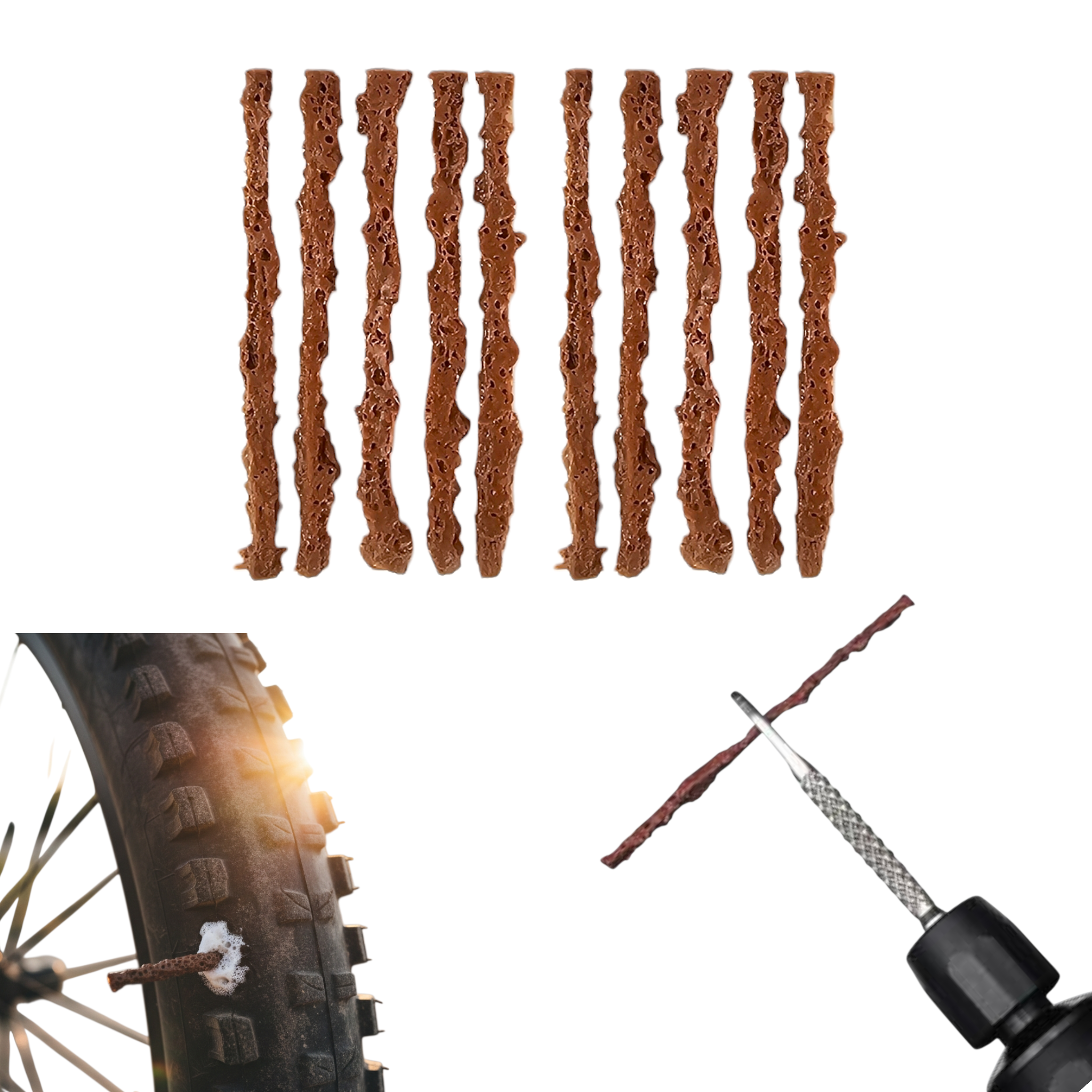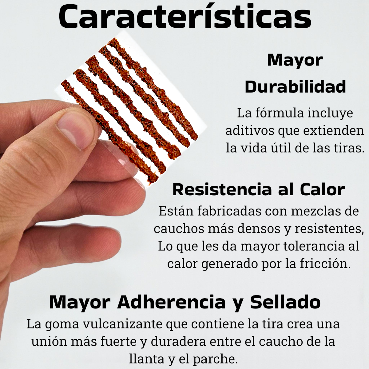Mantén tus rodadas sin interrupciones con este set de tiras de caucho vulcanizado para reparar llantas tubeless, diseñadas para sellar ponchaduras de forma rápida, segura y efectiva. Su material resistente y altamente adherente garantiza una reparación duradera, ideal para ciclismo de montaña, ruta o gravel.
