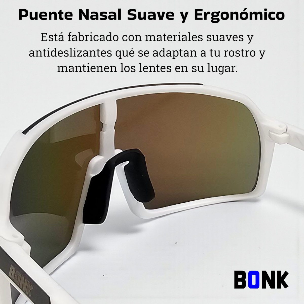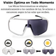 Disfruta entrenamientos más cómodos gracias a su puente nasal recubierto de silicón, que evita que los lentes se deslicen incluso con sudor, y un marco flexible que se ajusta naturalmente a la cabeza brindando estabilidad sin presión. Cambia de mica según las condiciones del día: polarizada, fotocromática, espejo o neutra… tú eliges la ventaja.