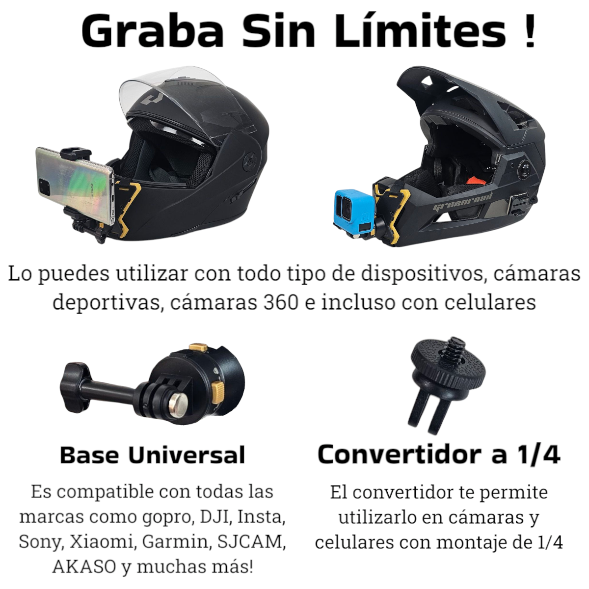 Graba cada momento de tu aventura con total seguridad y comodidad. Este soporte para casco full face está diseñado para quienes buscan capturar sus recorridos en motocicleta o bicicleta sin preocuparse por la estabilidad de su cámara.