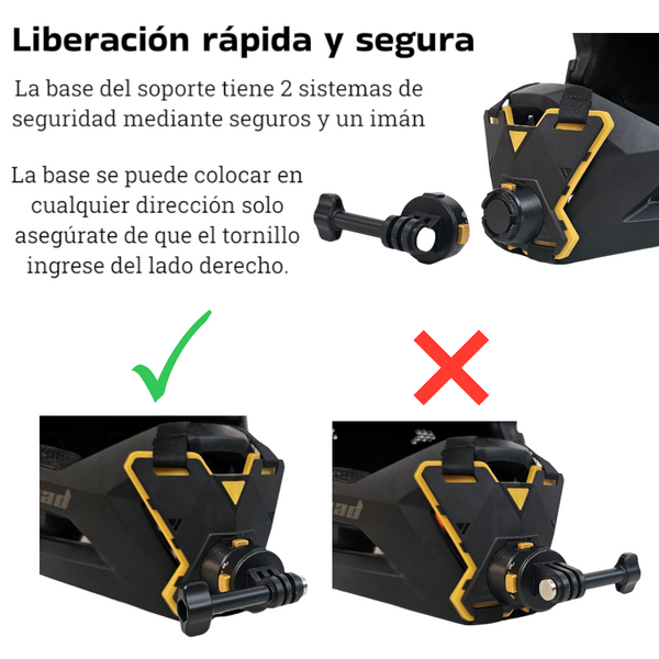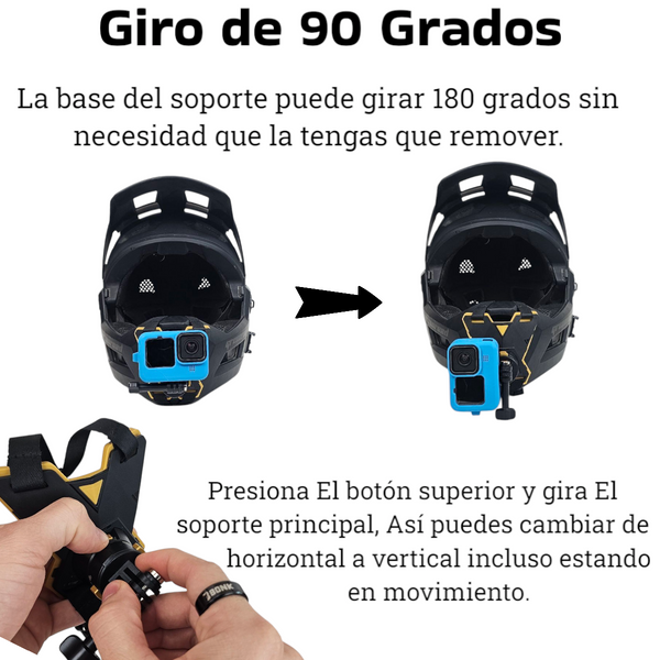 Compatible con todas las marcas y modelos de cámaras deportivas, incluidas cámaras 360, este soporte es la elección perfecta para riders que no quieren perder ningún detalle. Lleva tus grabaciones a otro nivel y captura tus recorridos como un profesional.